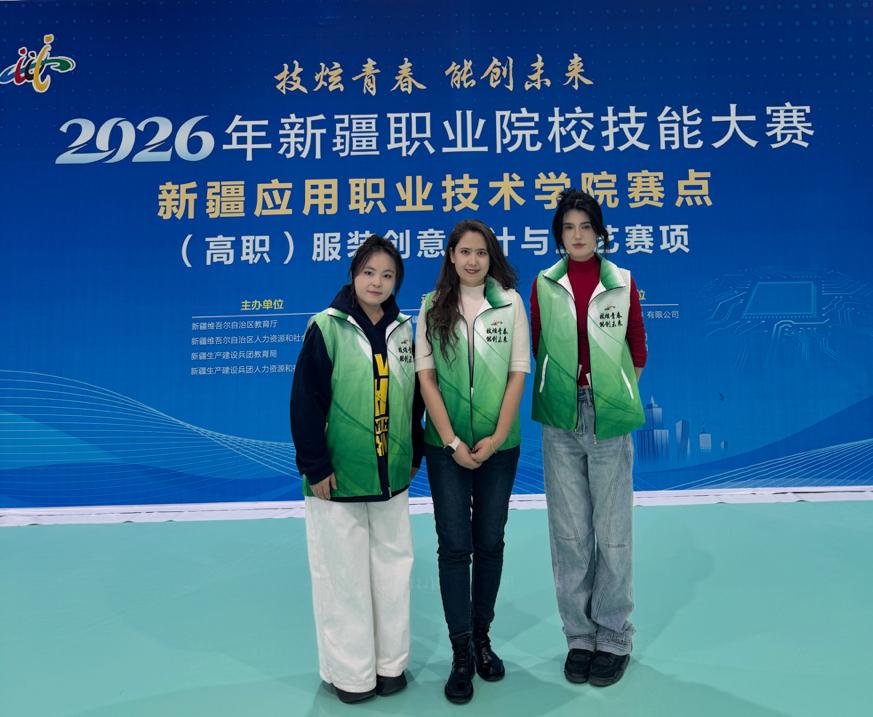 近日,2026年自治区职业院校技能大赛服装创意设计与工艺赛项圆满落幕。学院工艺美术系阿依努拉·阿卜都艾尼、古丽米热·阿卜来提两名同学凭借扎实的专业功底从全区众多参赛队伍中脱颖而出,斩获该赛项三等奖。