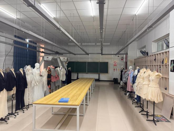 该教室为学生提供实践教学,培养学生的服装制作技能和工艺实践能力,使学生掌握从服装款式设计到实际成品制作的全过程。