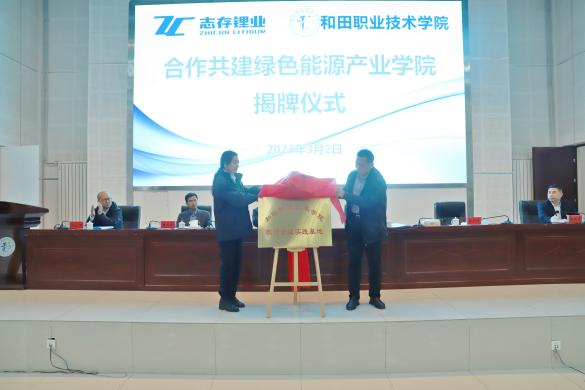 新疆志存锂业集团新疆基地副总经理张洋艳经理讲到,本次签约及揭牌是和田职业技术学院与志存合作,创新人才培养的重要标志,也是双方深化人文交流的显著成果。希望学院聚力打造人才培养的新标杆、产教融合的新典范、产业培育的新基地,坚持人本、创新、合作、共赢的理念,坚持贯通专业、就业、产业,推进人才链与创新链、产业链的有效融合,聚焦新材料、新能源产业所需,培养一批高素质应用型人才走向企业、扎根和田,为产业高质量发展提供坚强的人才支撑。