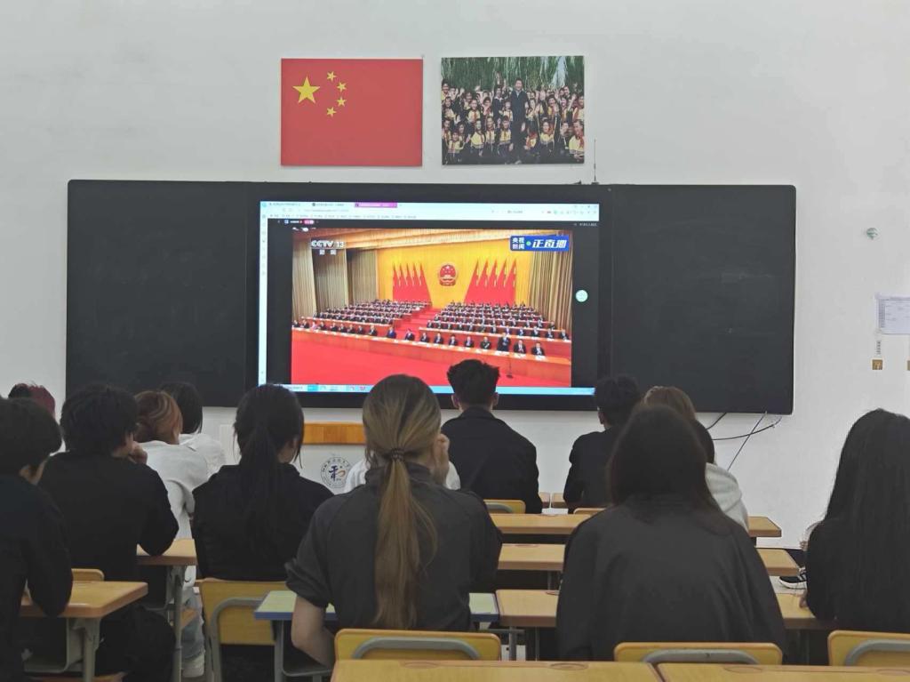 大会直播过程中,师生们聚精会神、认真聆听,深切感受新疆在经济发展、社会进步、民族团结、民生改善等方面发生的翻天覆地的变化,现场师生无不倍感振奋、深受鼓舞,不时为新疆 70 年来取得的辉煌成就鼓掌喝彩。