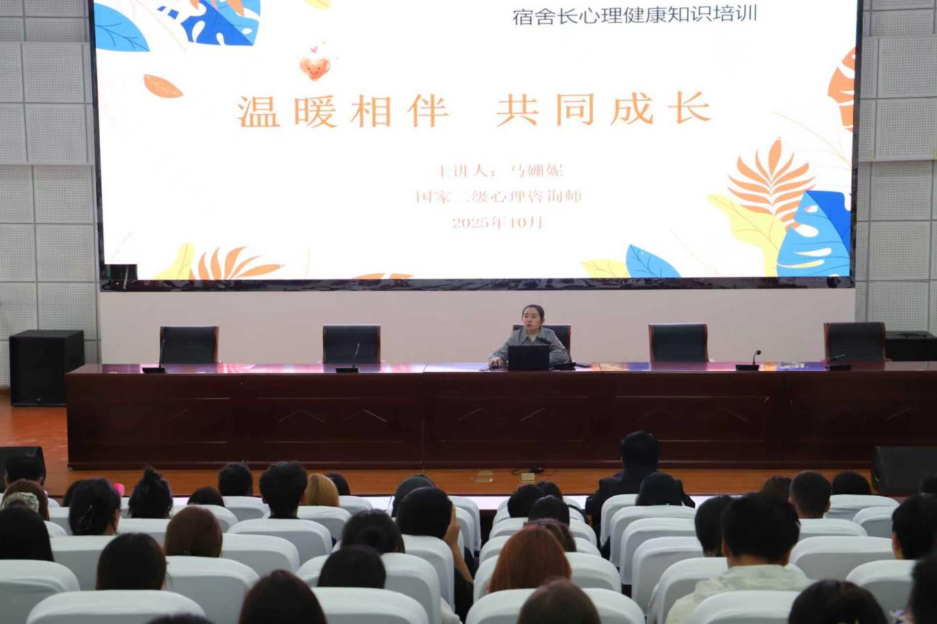 为提升宿舍长的心理支持能力,深化宿舍人际关系管理,构建和谐互助的宿舍氛围,2025年10月29日,和田职业技术学院学生工作部邀请国家二级心理咨询师马姗妮老师,面向全校700余名宿舍长开展《温暖相伴 共同成长》心理技能培训。
