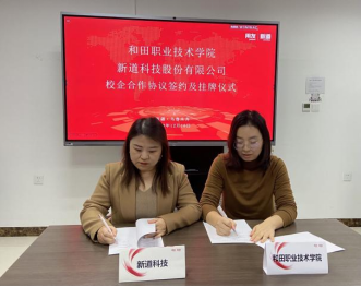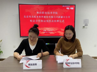 在充分交流的基础上,和田职业技术学院与新道科技股份有限公司、北京用友政务软件股份有限公司举行了隆重的校企合作签约仪式。双方代表共同签署了合作协议,并为“校企合作单位”揭牌。这标志着学校与企业建立起紧密的合作关系,为学生搭建了通往企业的实践桥梁,也为企业储备专业人才提供了有力保障。