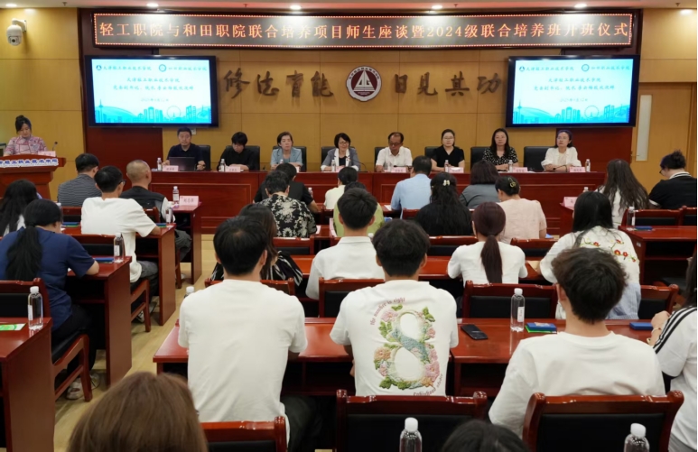 同日14时,和田职业技术学院与天津轻工职业技术学院联合培养项目师生座谈会暨2024级电子商务、服装设计与工艺专业开班仪式,在天津轻工涵哺楼第二会议室举行。